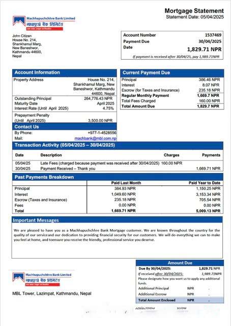 Nepal Machhapuchchhre Bank mortgage statement Word and PDF template download template file