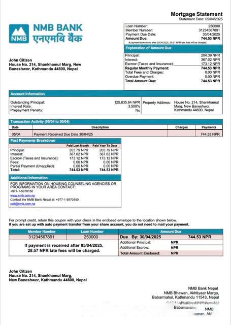 Nepal NMB Bank Nepal mortgage statement Word and PDF template download template file
