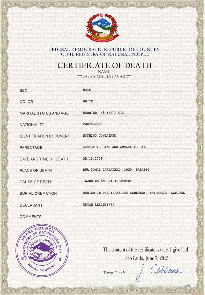 Nepal vital record death certificate PSD template download template file