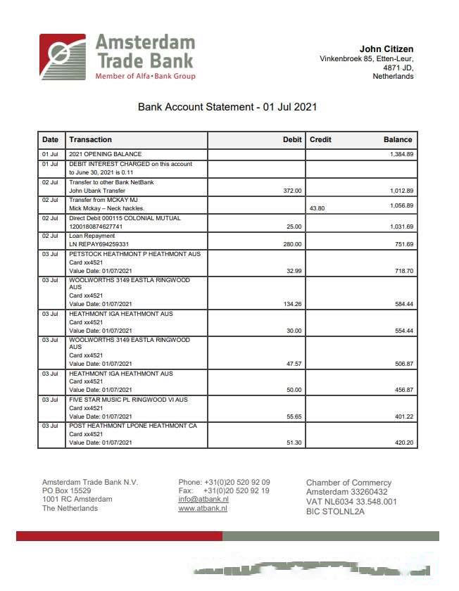 Netherlands Amsterdam Trade Bank download template file