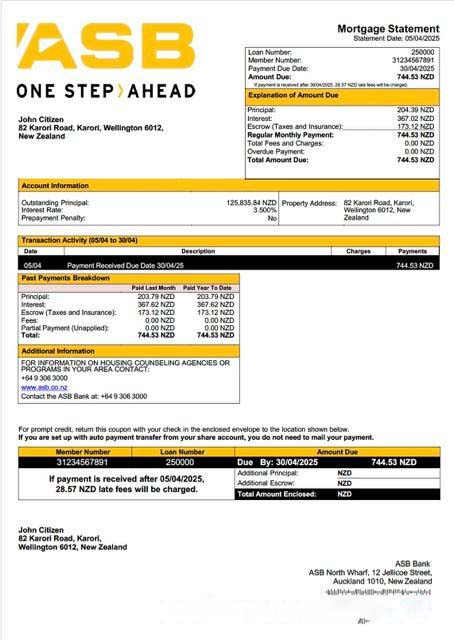 New Zealand ASB Bank mortgage statement Word and PDF template download template file