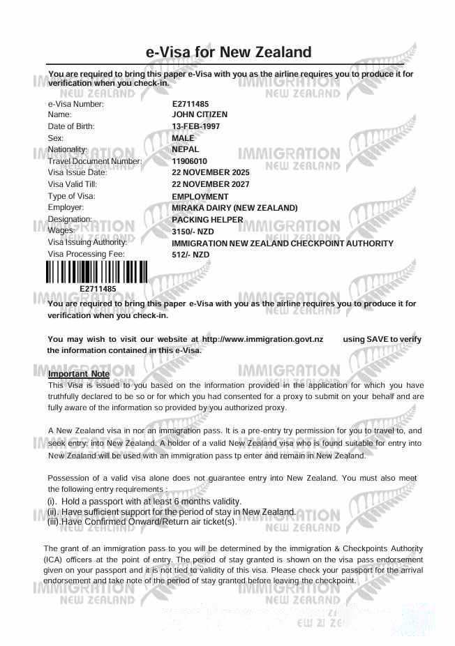 New Zealand e visa template in Word and PDF formats, version 2 download template file