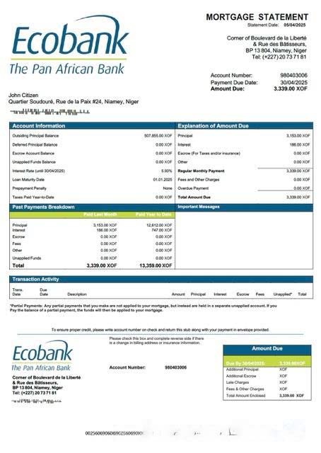Niger Ecobank mortgage statement Word and PDF template download template file