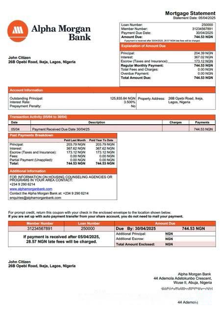 Nigeria Alpha Morgan Bank mortgage statement Word and PDF template download template file