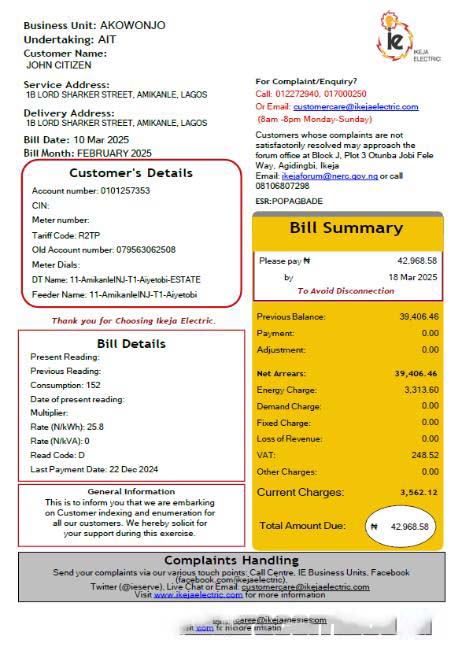 Nigeria IKEJA Electric utility bill template in Word and PDF formats download template file