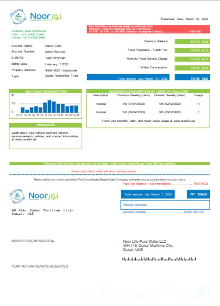Noor Life Pure Water LLC utility business bill, SCR download template file