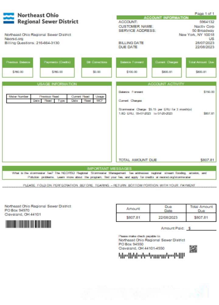 Northeast Ohio Regional Sewer Districtutility business bill, SCR download template file