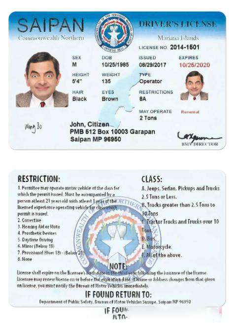 NORTHERN MARIANA ISLANDS Saipan Driving License download template file
