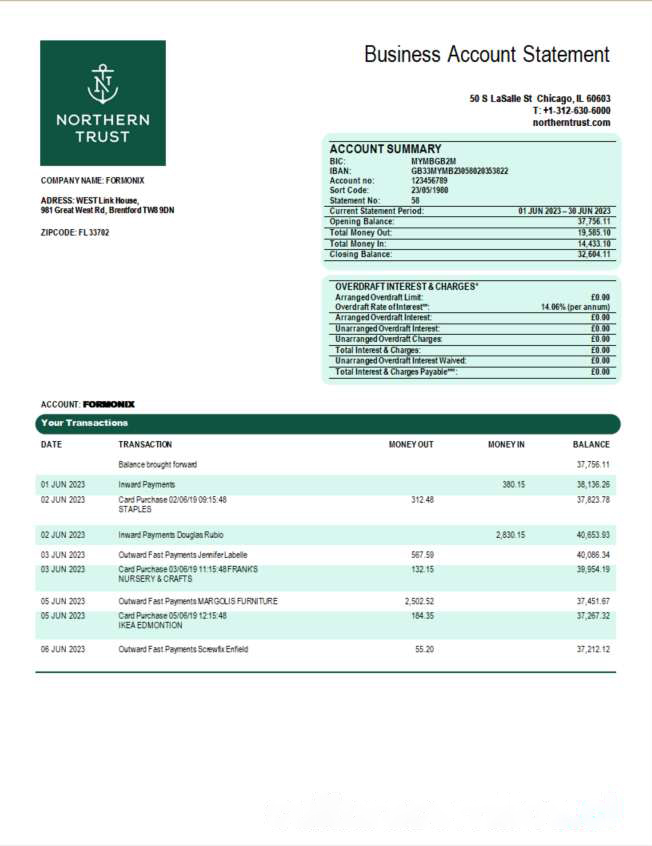 Be the first to review “Northern Trust Bank firm statement Word and PDF template download template file”