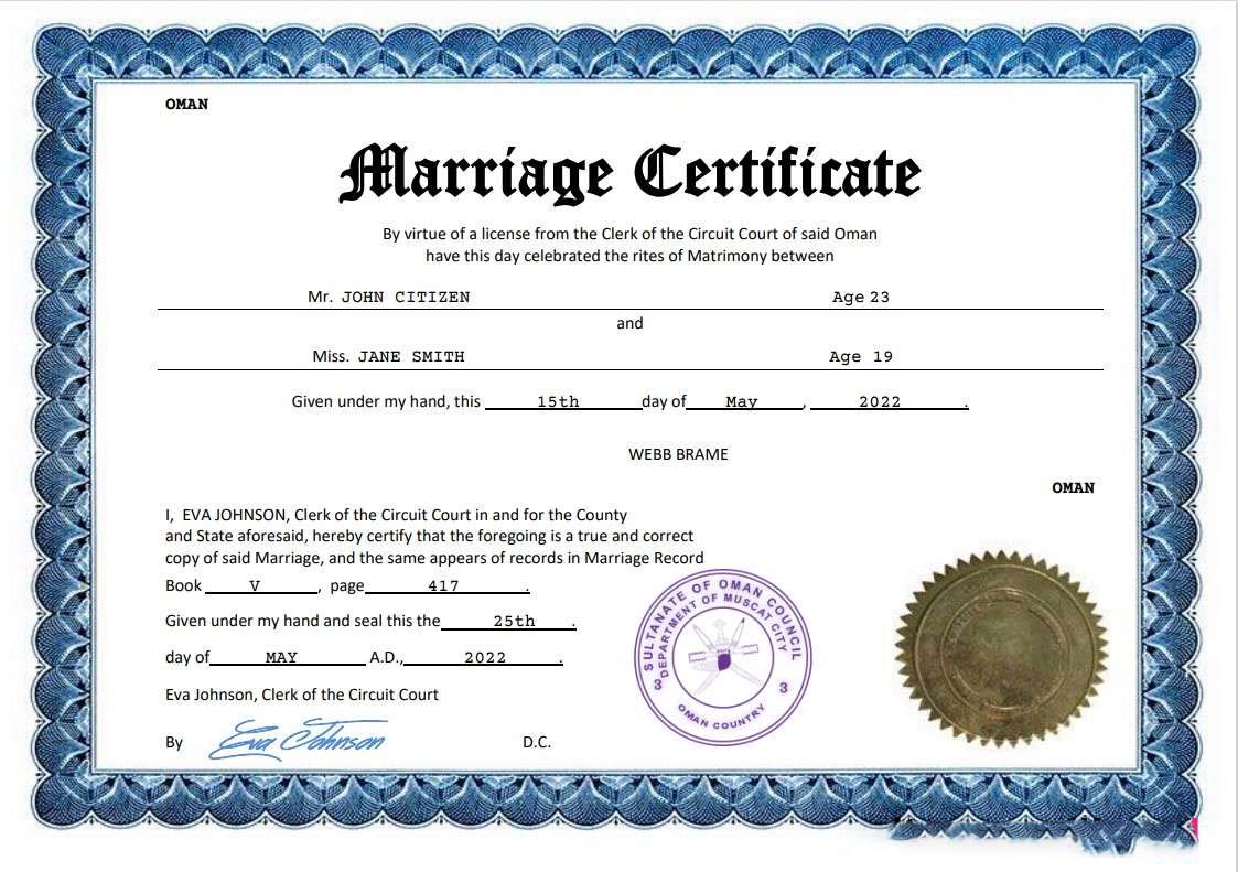 Oman marriage certificate Word and PDF template download template file