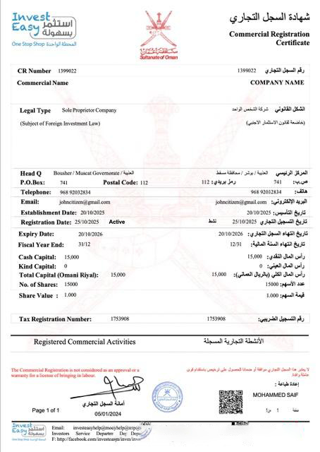 Be the first to review “Oman registration certificate Word and PDF template, version 2 download template file”