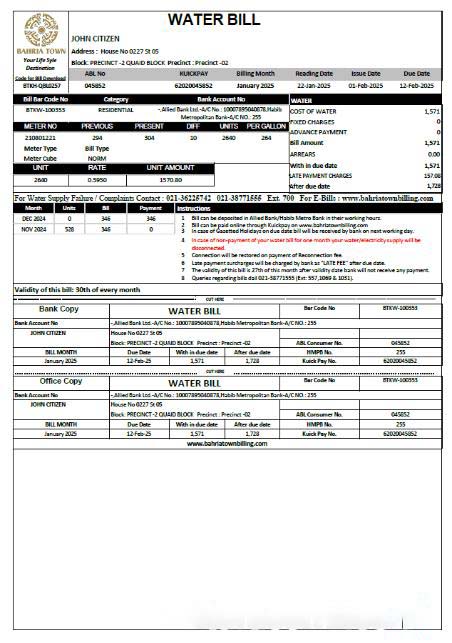 Pakistan Bahria Town utility bill template in Word and PDF formats download template file