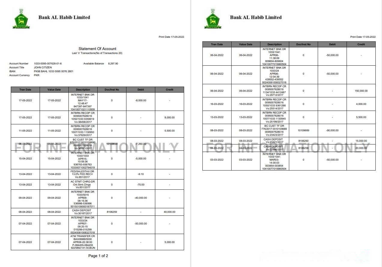 Be the first to review “Pakistan Bank Al Habib statement 2 pages download template file”