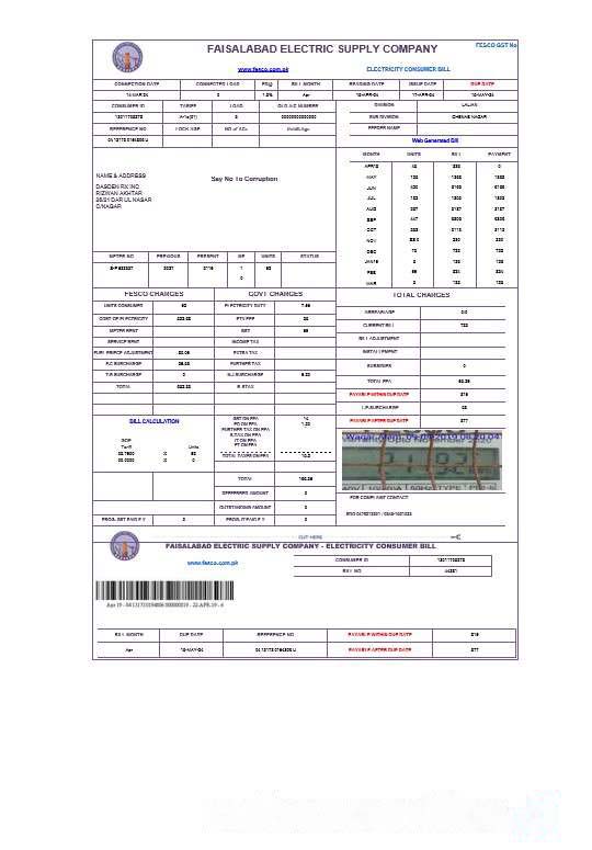 PAKISTAN FAISALABAD business utility bill Word and PDF template download template file