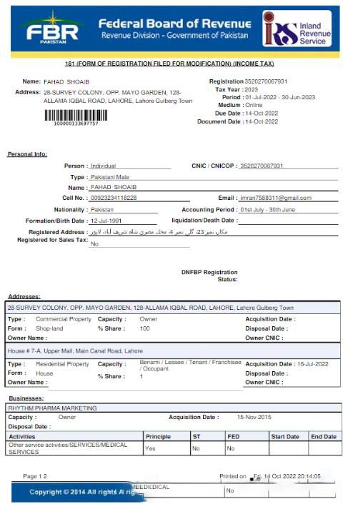 PAKISTAN FBR utility bill Word and PDF template download template file