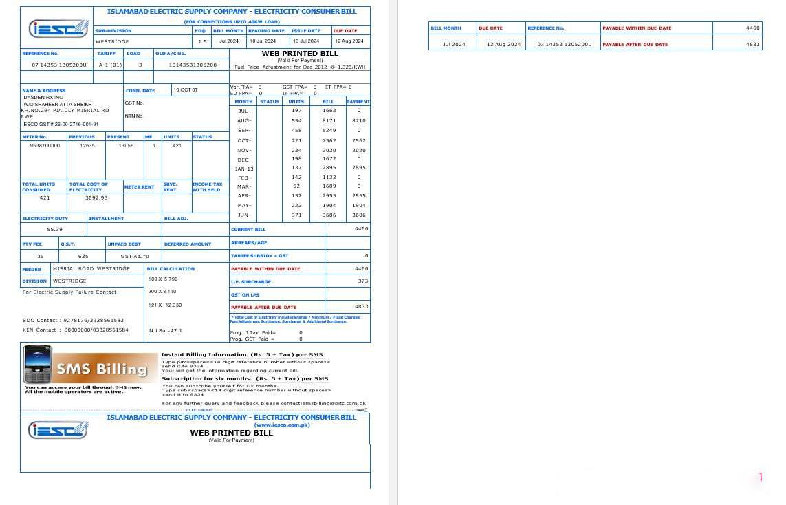 PAKISTAN IESC business utility bill Word and PDF template download template file