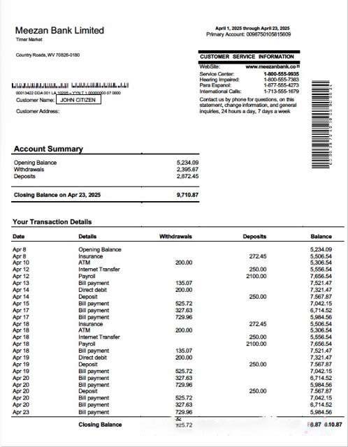 Pakistan Meezan Bank Limited account statement Word and PDF template download template file