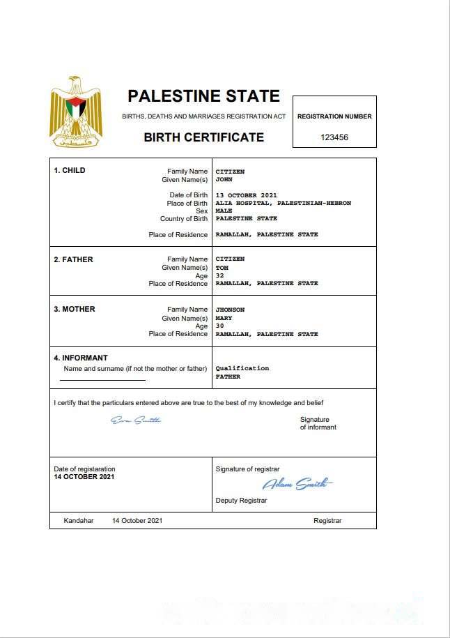 Be the first to review “Palestine vital record birth certificate Word and PDF template download template file”