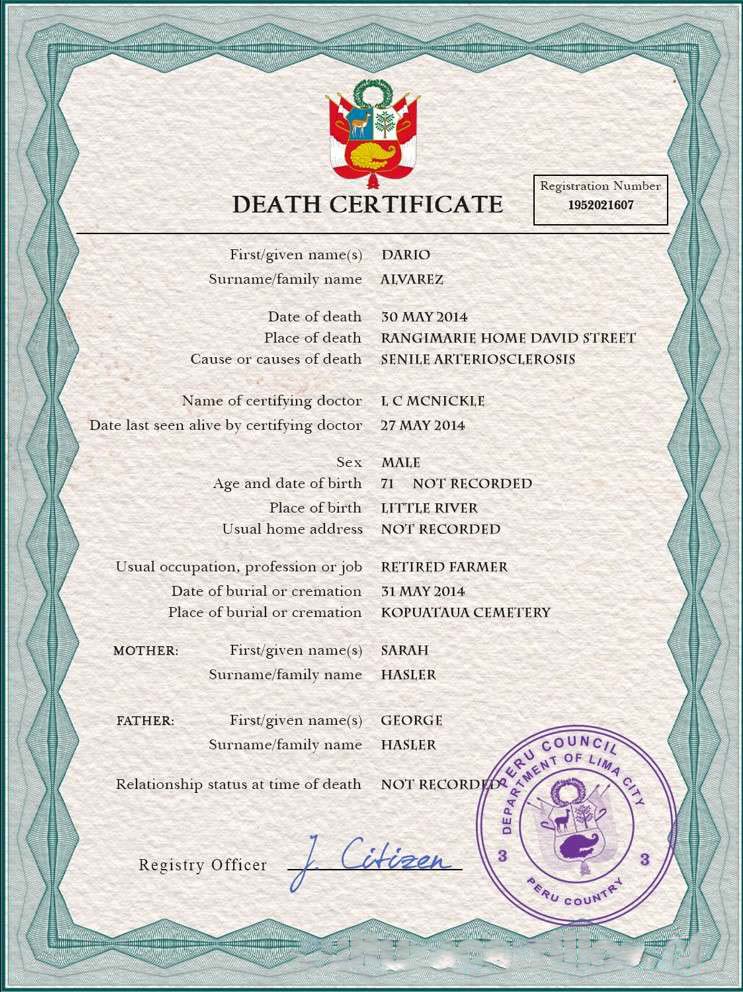 Peru death certificate PSD template download template file