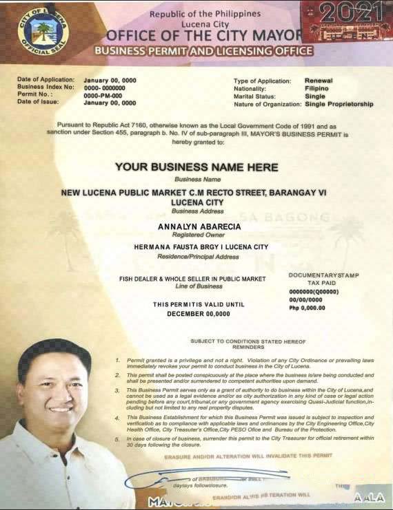 Philippines City of Lucena private entrepreneur certificate template in PSD format download template file
