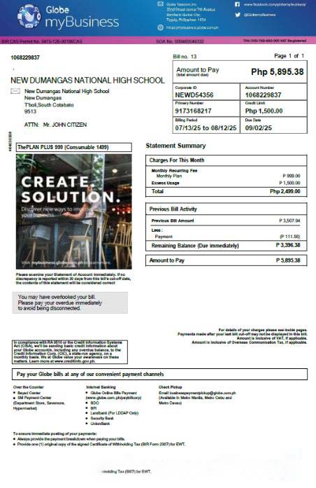 Philippines Globe myBusiness utility bill template in Word and PDF formats download template file