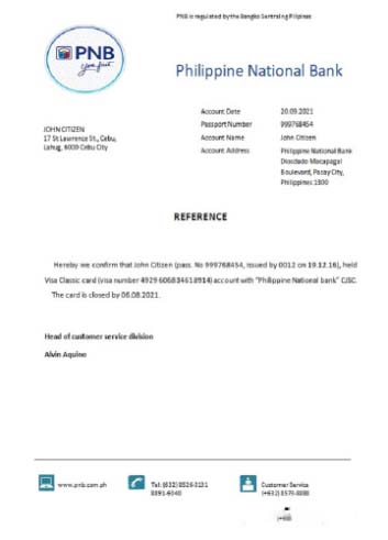Philippines PNB closure reference download template file