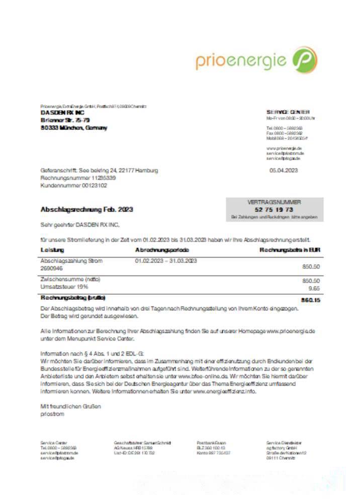Prioenergie proof of address utility business bill, SCR download template file