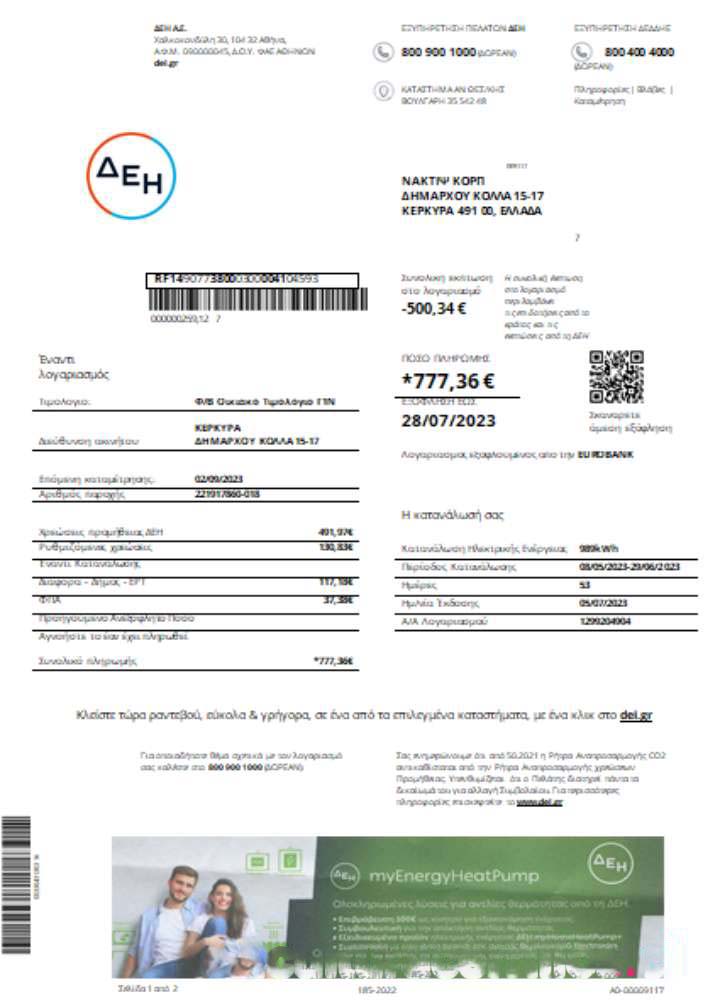 Public Power Corporation (DEI) utility business bill, SCR download template file