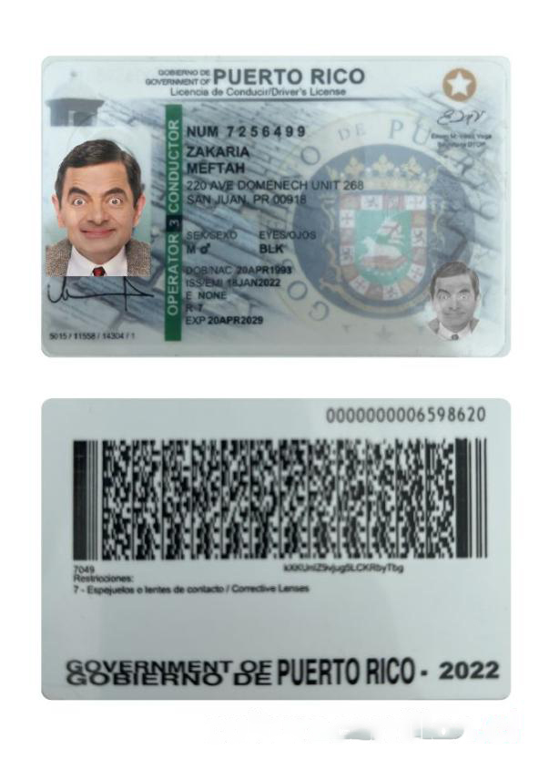 Puerto Rico Driving License 2022 present download template file