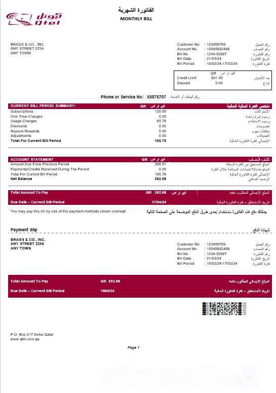 Be the first to review “QATAR QTEL business utility bill Word and PDF template download template file”