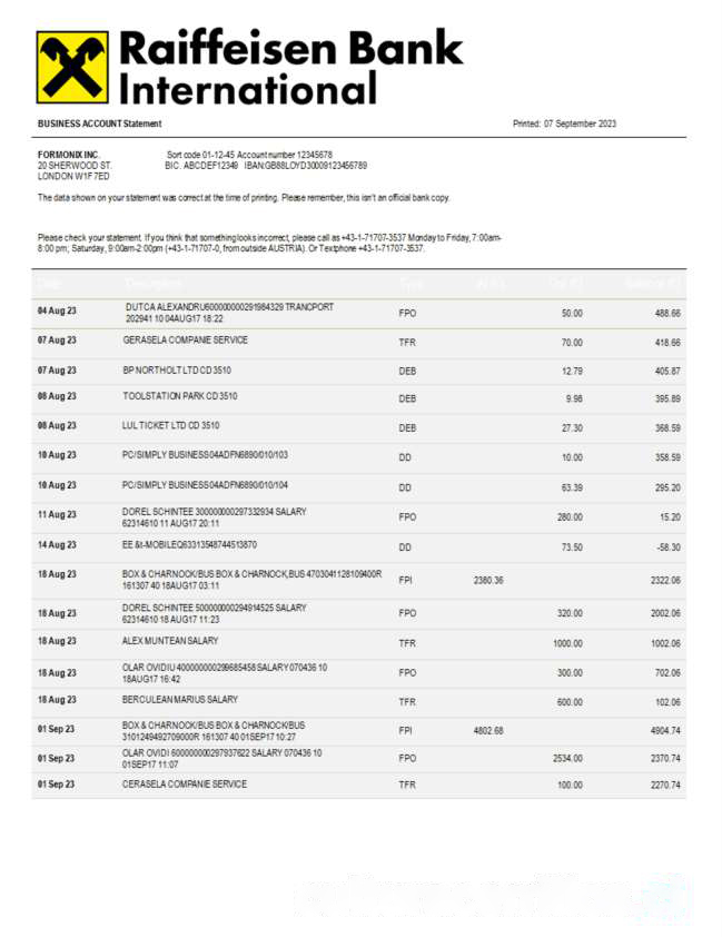 Raiffeisen Bank International Bank International company statement Word and PDF template download template file