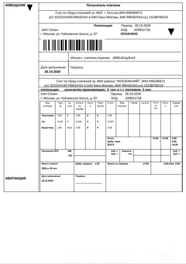 Russia Izveshenie utility bill template in Word and PDF format, fully editable download template file