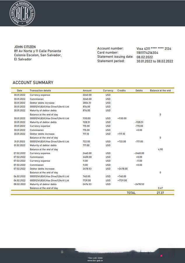 Salvador Banco Central de Reserva de El Salvador bank statement download template file