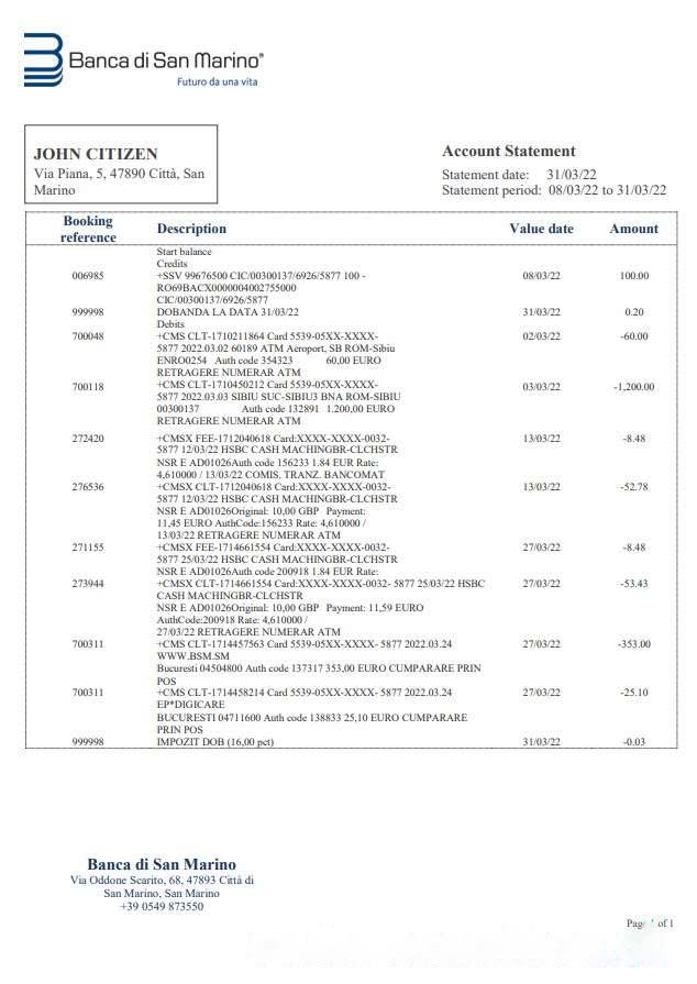 Be the first to review “San Marino Banca di San Marino bank statement download template file”