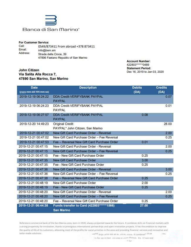Be the first to review “San Marino Banca di San Marino bank statement template, Word and PDF format (.doc and .pdf) download template file”