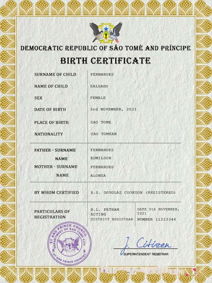 Sao Tome and Principe vital record birth certificate PSD template download template file