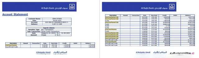 Saudi Arabia Alrajhi Bank account statement Word and PDF template, 2 pages download template file