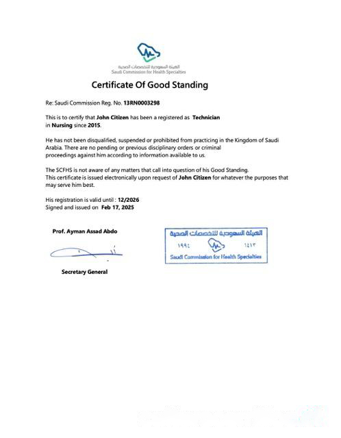 Saudi Arabia certificate of good standing Word and PDF template, version 3 download template file