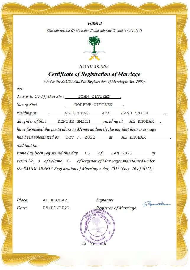 Saudi Arabia marriage certificate Word and PDF template download template file