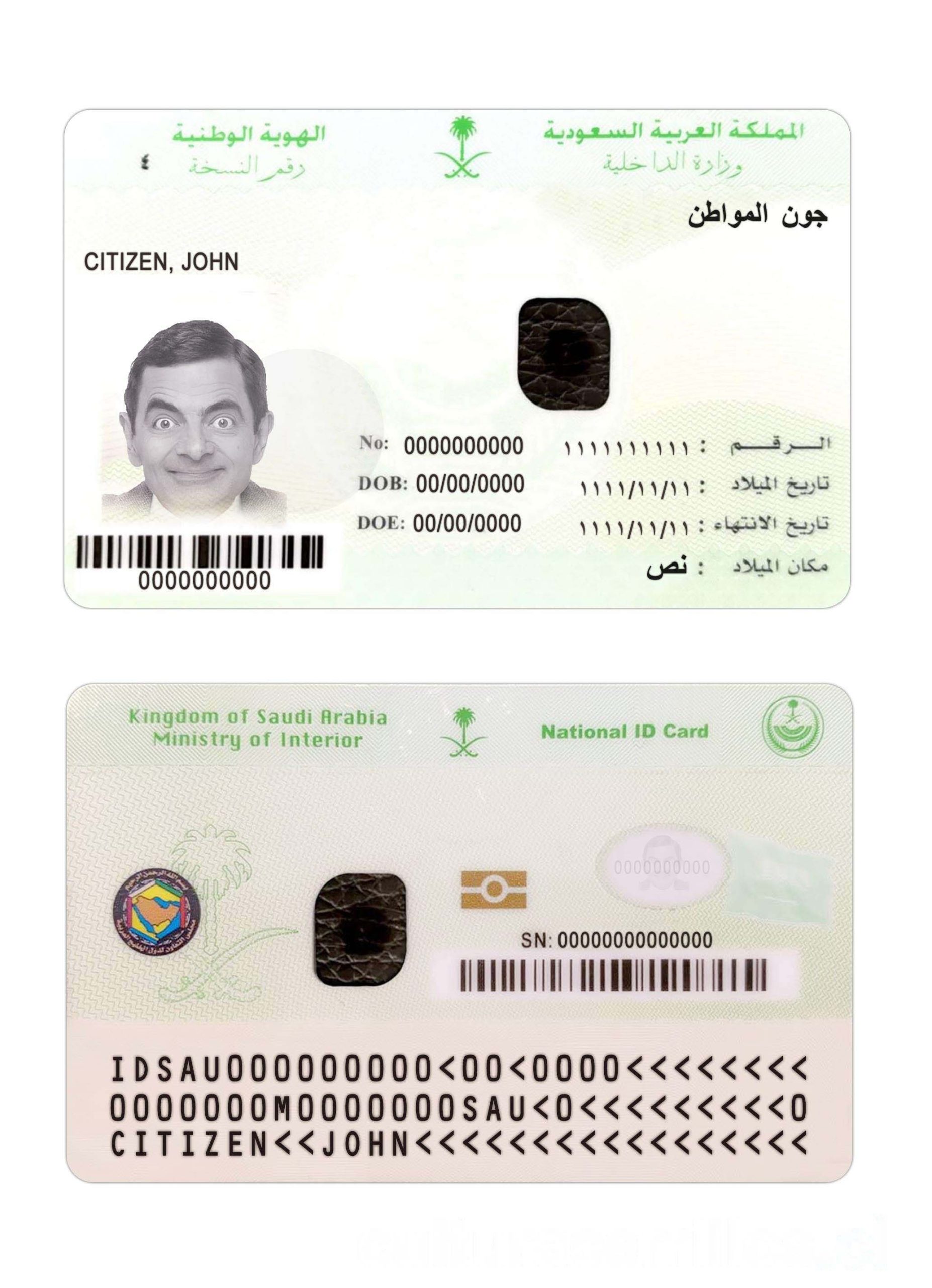 Saudi Arabia National ID Card Download Template File