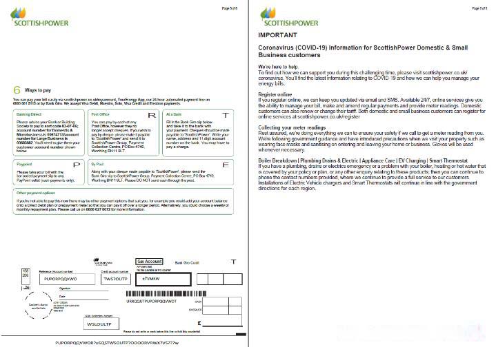 Scotland Scottish Power utility bill template in Word and PDF formats, 6 pages, 5 6 pages download template file