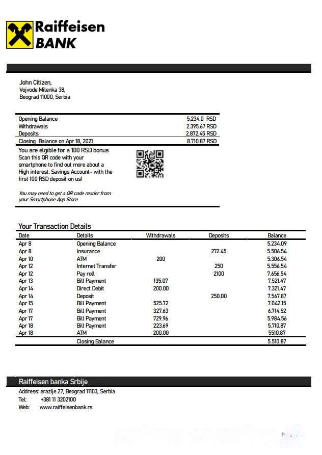 Serbia Raiffeisen bank statement download template file
