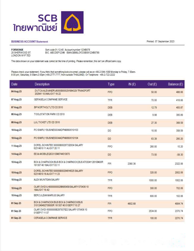 Siam Commercial Bank enterprise account statement Word and PDF template download template file