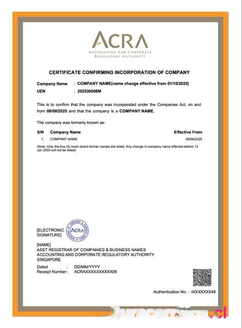 Singapore certificate confirming incorporation of company Word and PDF template download template file