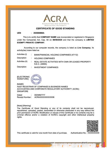 Singapore certificate of good standing Word and PDF template, version 2 download template file
