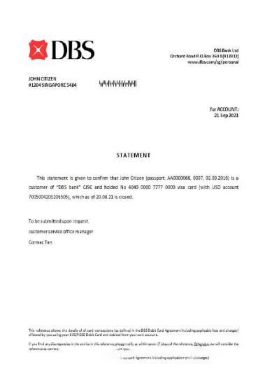 Singapore DBS bank closure reference download template file