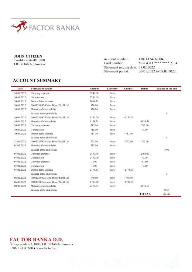 Be the first to review “Slovenia Factor Banka bank statement download template file”