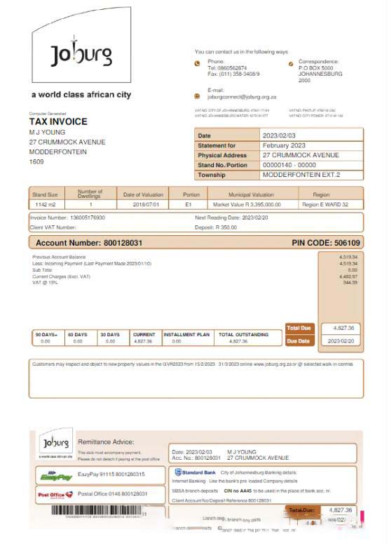 SOUTH AFRICA JOBURG utility bill Word and PDF template download template file