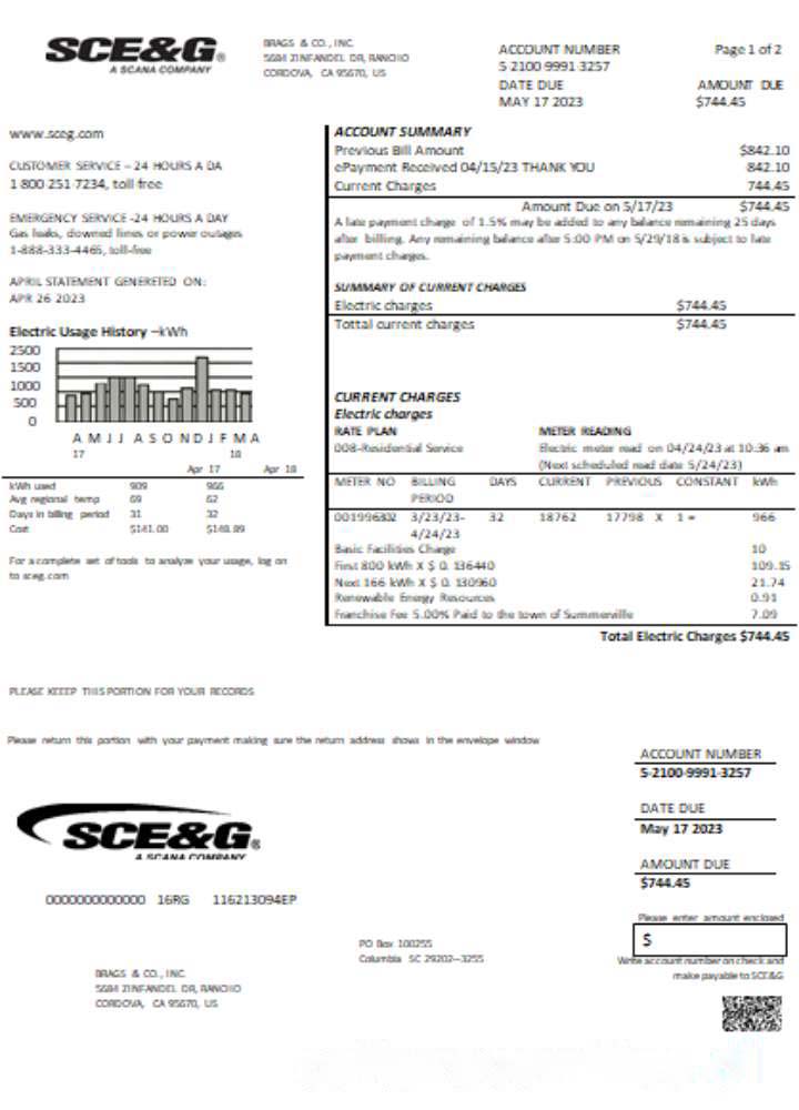Be the first to review “South Carolina SCE&G electricity utility business bill, SCR download template file”