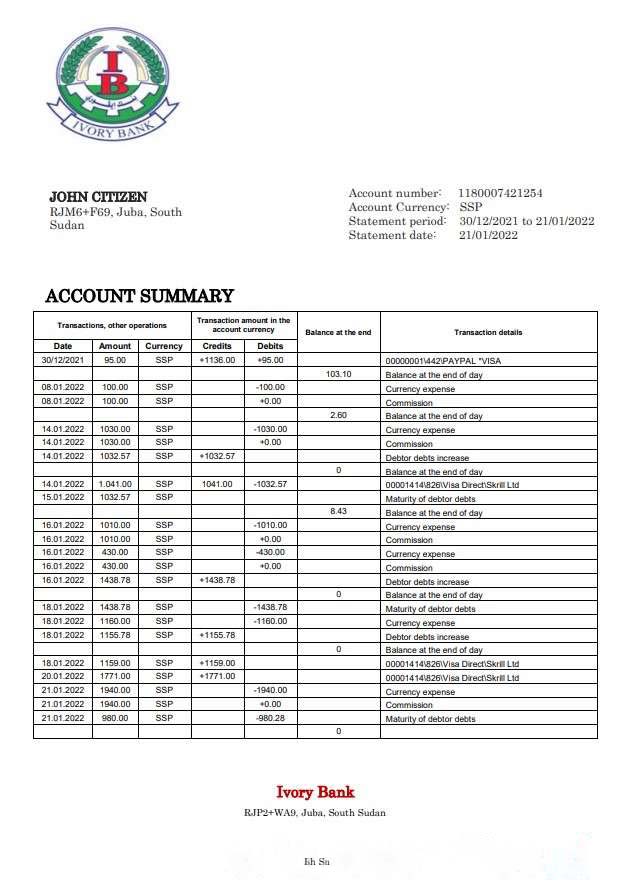 Be the first to review “South Sudan Ivory Bank statement download template file”